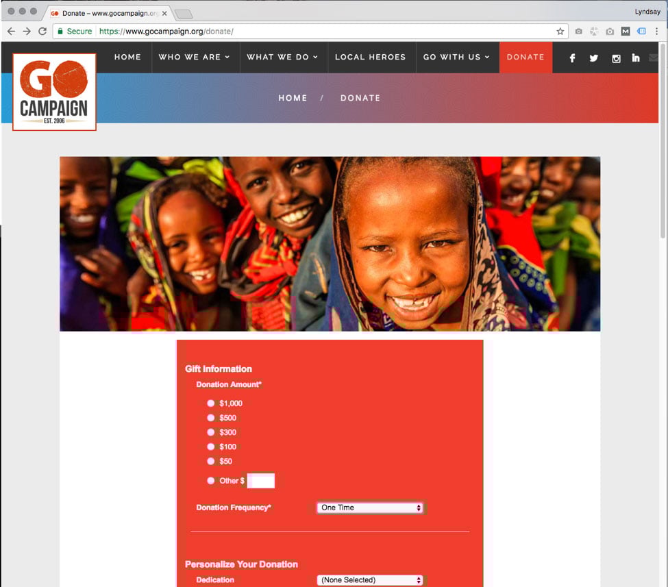 GO Campaign manages their donor database through blackbaud’s eTapestry donor management CRM. This enterprise-level donor management software meant that integrating donor data from the website, social media, email, direct mail, and events management would be seamless.
